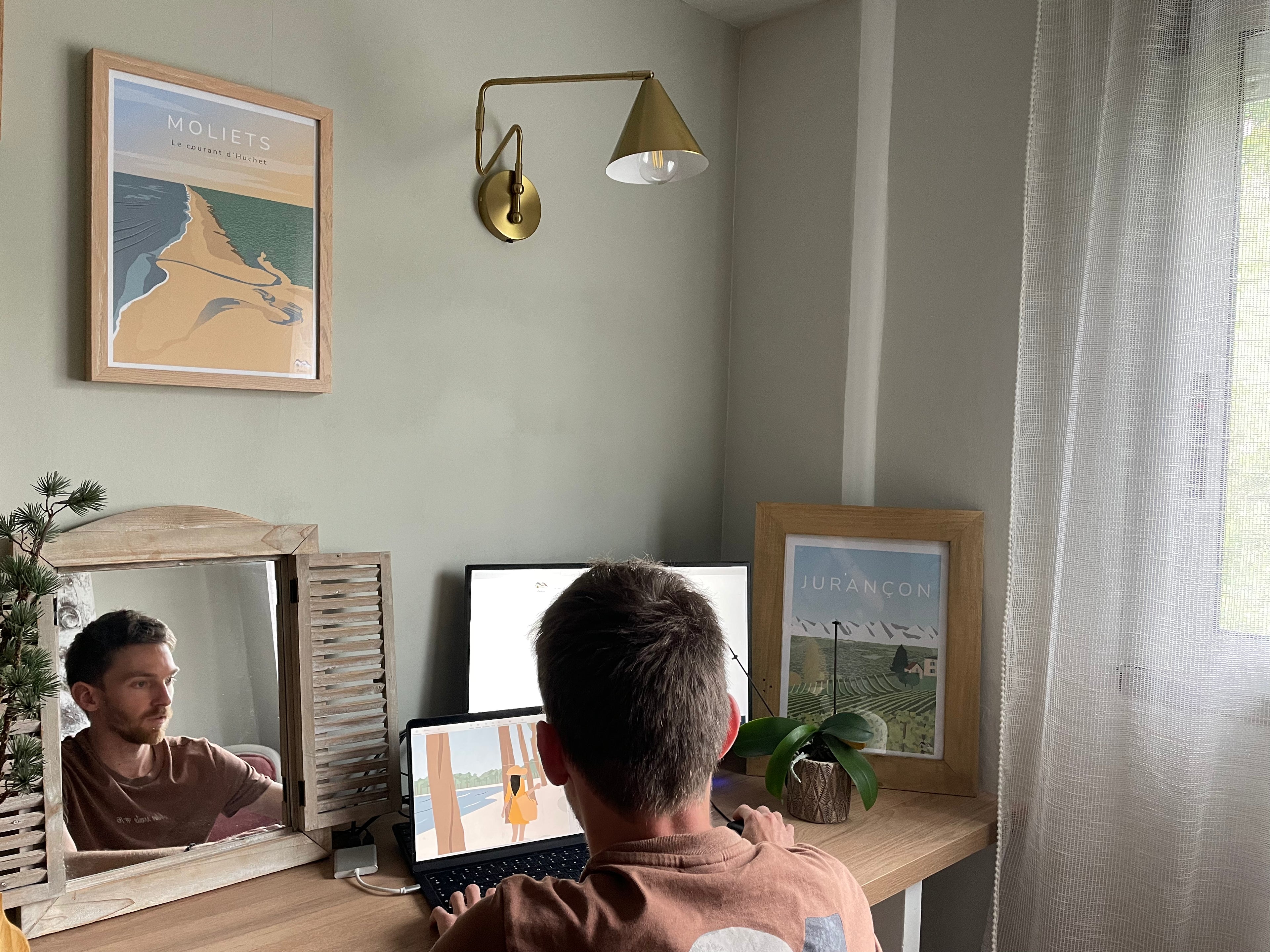 Je dessine chaque illustration manuellement sur ordinateur, de la sélection de la vue à l'illustration finale, en passant par le choix des couleurs. Ce processus minutieux nécessite de longues heures de travail pour garantir un résultat unique, original et de haute qualité.